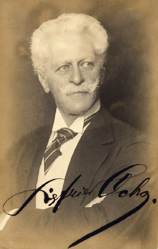 Siegfried Ochs 1858 - 1929 Ochs war wie Urspruch gebürtiger Frankfurter, hatte aber seinen musikalischen Wirkungskreis in Berlin, wo er seit 1878 an der Königlichen Musikschule unter der Leitung von Joseph Joachim tätig war. 1882 gründete er zwei philharmonische Chöre, die später mit dem Berliner Philharmonischen Orchester vertraglich verbunden wurden. Als Komponist bekannt wurde Ochs mit seiner komischen Oper „Im Namen des Gesetzes und mit der Parodie auf 14 berühmte Komponisten, darunter Bach, Haydn, Mozart, Beethoven und Wagner in seinen Variationen über das Volkslied „Kommt ein Vogel geflogen…“. Im Jahr 1900 war er gemeinsam mit Josef Joachim und Franz Wüllner, massgeblich beteiligt an der Gründung der Neuen Bachgesellschaft in Leipzig. Ochs besuchte Urspruch im Dezember 1906 in Frankfurt. Er wollte in Berlin den gerade fertig gestellten ersten Akt der Oper „Die Heilige Caecilie“ zur Aufführung bringen. Wenige Tage nach diesem Besuch starb Urspruch, und die Aufführung ist dann nicht mehr erfolgt. |